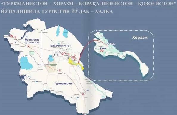 «Нами разработан туристический маршрут-кольцо по локациям сразу в трех странах Центральной Азии – Узбекистане, Туркменистане и Казахстане. Это позволит расширить возможности посещения нашего региона иностранными туристами», – говорится в сообщении.